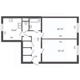 - 2 изолированные комнаты 19,7м² и 18,7 м² классической прямоугольной формы с окнами на восток;