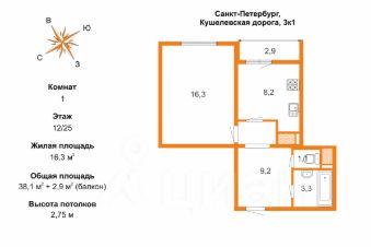 В прямой продаже 1 ккв в современном жилом комплексе Калининского района.