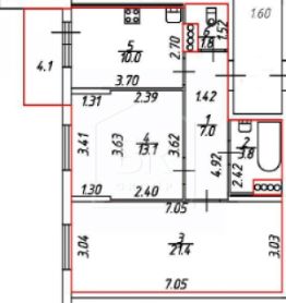 * Высота потолков: 2,6 м.