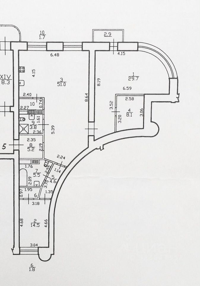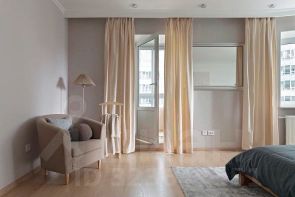 2 изолированные спальни равноудалены от гостиной и находятся в разных концах квартиры. В спальне 1, в которой почти 30 метров, есть выход на лоджию и своя просторная гардеробная. Но особенность ей придает большое дугообразное окно, занимающее практически всю стену. В спальне 2 есть небольшая гардеробная и небольшой коридор, который делает помещение еще более приватным. Здесь можно расположить кабинет или детскую, не переживая, что звуки с гостиной могут потревожить.