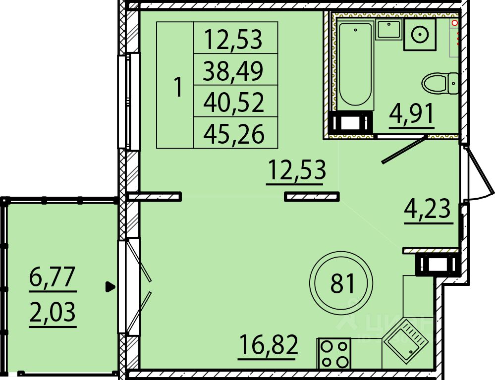 38,49 м²