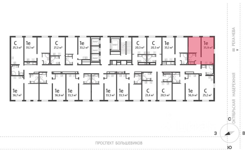Предлагаем Вашему вниманию квартиру с евро-планировкой, площадью 36 кв.м. Застройщик ЛСР