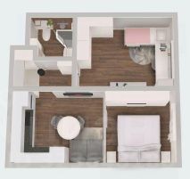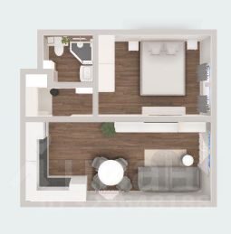 В данной планировке за счет 2-х окон в кухне-гостиной, есть возможность разделить кухню от комнаты и получить небольшую (8 м.кв.), но функциональную спальню (кабинет). (см.фото в ленте)