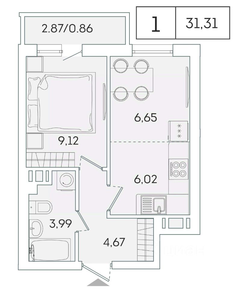 В продаже от застройщика 1 комнатная квартира 30.4 кв. м с черновой отделкой и практичной планировкой для удобной организации пространства. Корпус сдан