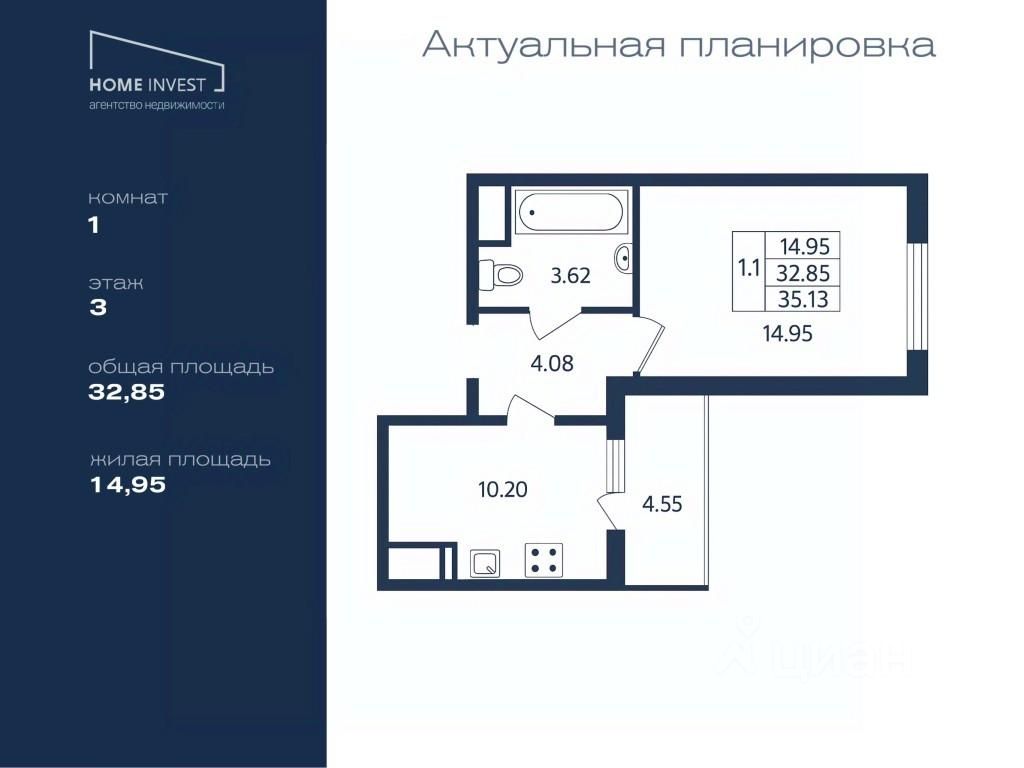 Арт. 89257379. В продаже уютная однокомнатная квартира в ЖК "Чистое небо".