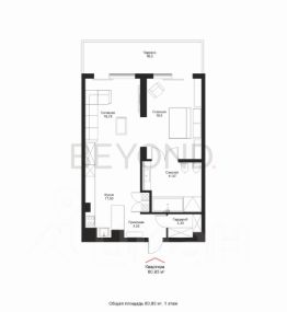Апартаменты площадью 83,7 кв. м, расположенные на 1 этаже, имеют выход на террасу и во внутренний двор. Резиденция включает в себя спальню, гостиную и зону кухни со встроенной техникой компании Miele, одним санузлом и гардеробной для хранения одежды. Отделка в санузле выполнена из мрамора и оникса, установлена сантехника производителя Villeroy Boch. В спальне и кухне-гостиной напольное покрытие сочетает ковролин и керамогранит, отделка стен выполнена из шёлковых обоев. Системы хранения из массива дерева подчеркивают элегантность и благородство внутренней отделки апартаментов.