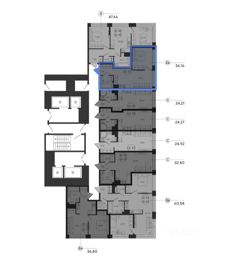 В продаже евро двухкомнатная квартира в ЖК Башни Элемент