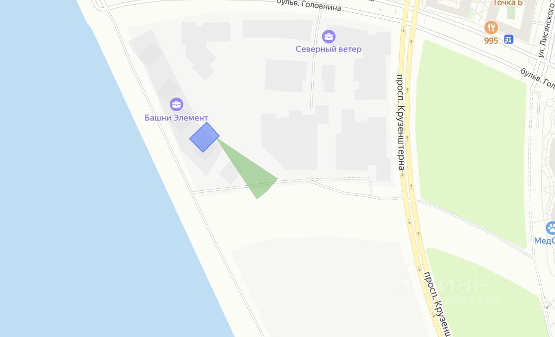 Жилой комплекс находится на Васильевском острове на первой линии Финского залива. Рядом расположен въезд на ЗСД, морской вокзал и пассажирский порт. За 10 минут на автомобиле можно добраться до метро Приморская, а за 20 минут — до стрелки Васильевского острова и Невского проспекта.