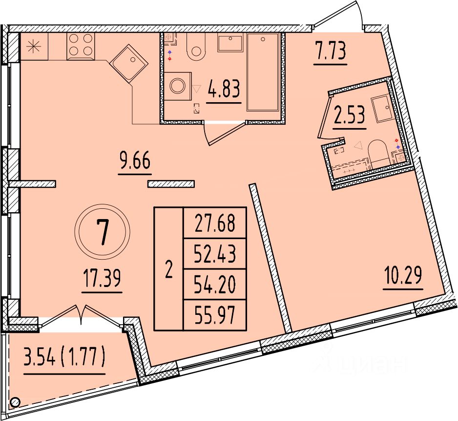Продаётся 2-комнатная квартира в строящемся доме (Дом 2), срок сдачи: III-кв. 2026, общей площадью 52.43 кв.м., на 1 этаже. Новый жилой комплекс "Образцовый квартал 17" от застройщика "СЗ Терминал-Ресурс" расположен по адресу: Россия, Санкт-Петербург, пос. Шушары, Соколиная улица