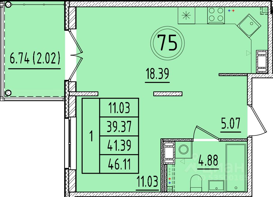 Продаётся 1-комнатная квартира в строящемся доме (Дом 2), срок сдачи: III-кв. 2026, общей площадью 39.37 кв.м., на 3 этаже. Новый жилой комплекс "Образцовый квартал 17" от застройщика "СЗ Терминал-Ресурс" расположен по адресу: Россия, Санкт-Петербург, пос. Шушары, Соколиная улица