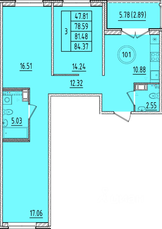 Продаётся 3-комнатная квартира в строящемся доме (Дом 1), срок сдачи: III-кв. 2026, общей площадью 78.59 кв.м., на 2 этаже. Новый жилой комплекс "Образцовый квартал 17" от застройщика "СЗ Терминал-Ресурс" расположен по адресу: Россия, Санкт-Петербург, пос. Шушары, Соколиная улица
