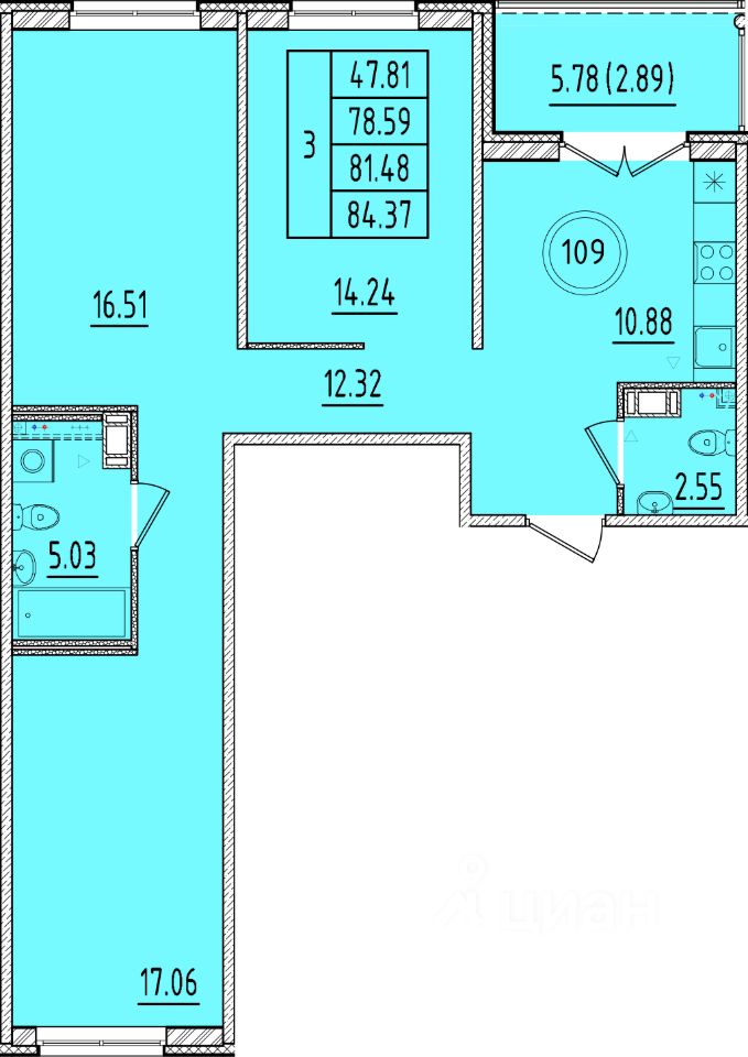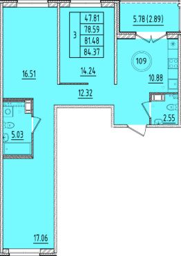 Продаётся 3-комнатная квартира в строящемся доме (Дом 1), срок сдачи: III-кв. 2026, общей площадью 78.59 кв.м., на 3 этаже. Новый жилой комплекс "Образцовый квартал 17" от застройщика "СЗ Терминал-Ресурс" расположен по адресу: Россия, Санкт-Петербург, пос. Шушары, Соколиная улица