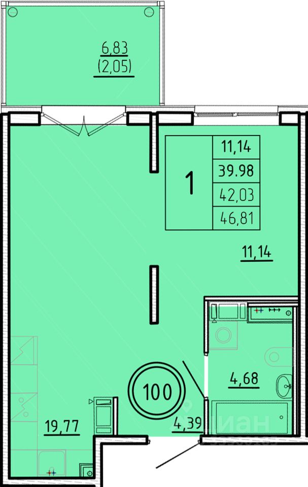 Продаётся 1-комнатная квартира в строящемся доме (Дом 2), срок сдачи: III-кв. 2026, общей площадью 39.98 кв.м., на 2 этаже.
