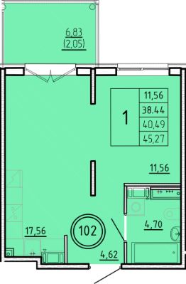 Продаётся 1-комнатная квартира в строящемся доме (Дом 2), срок сдачи: III-кв. 2026, общей площадью 38.44 кв.м., на 2 этаже.