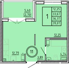 1-комн. квартира, 33,67 м²