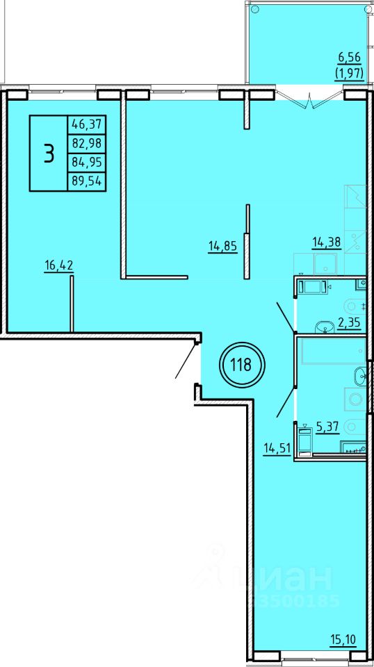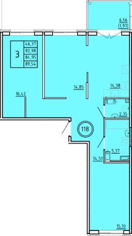 Продаётся 3-комнатная квартира в строящемся доме (Дом 1), срок сдачи: III-кв. 2026, общей площадью 82.98 кв.м., на 2 этаже.