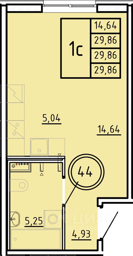 Студия, 29,86 м²
