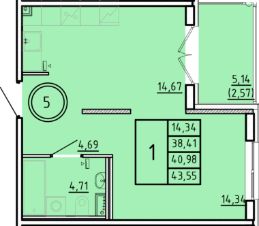1-комн. квартира, 38,41 м²