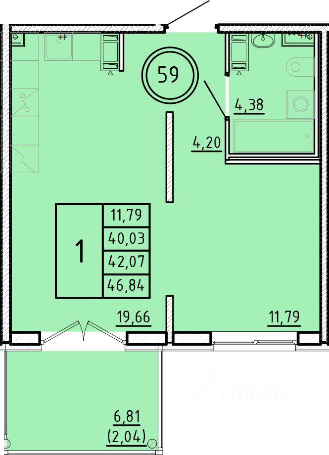 1-комн. квартира, 40,03 м²