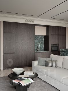 В квартире много натурального шпона, включая одну из гардеробных, вторая гардеробная Юнион.