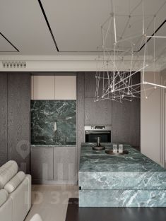 Вся мебель изготавливалась на заказ из премиальных материалов, каждый шкафчик с подсветкой.