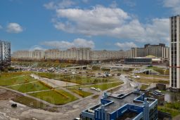 Вокруг — зелёные прогулочные зоны, парк 300-летия, кафе и школы.
