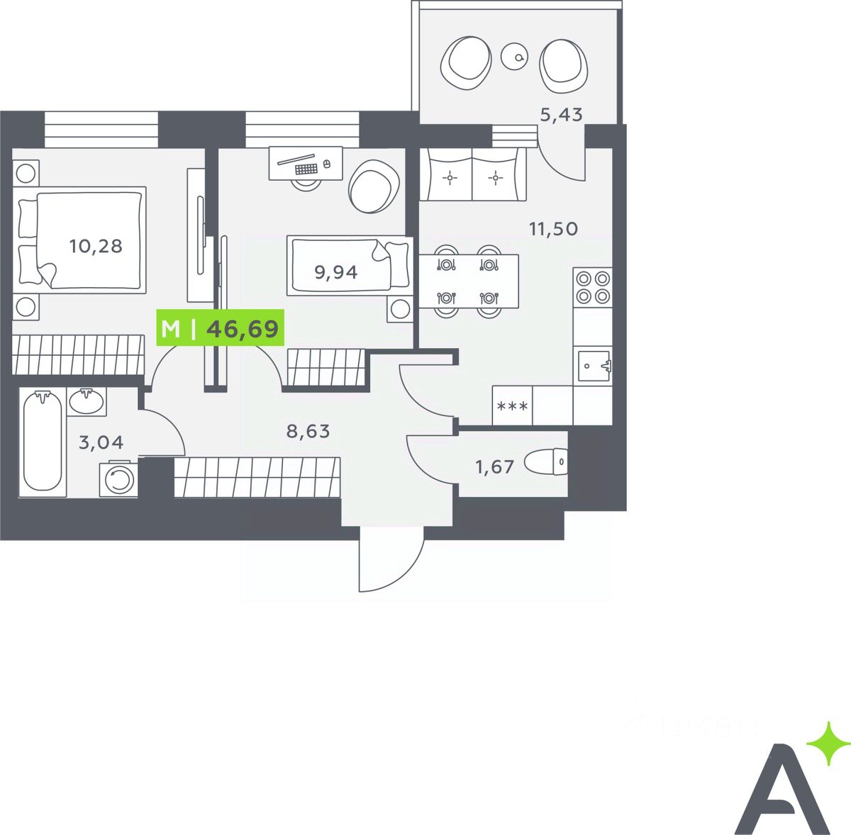Квартира в жилом комплексе класса комфорт+ "Аквилон VERBA"