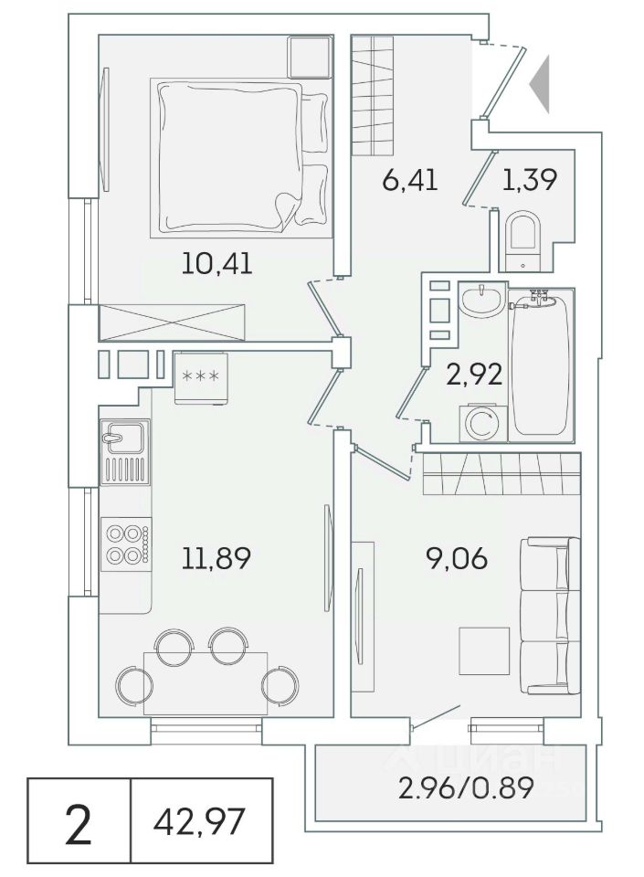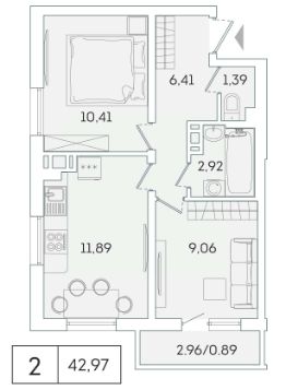 В продаже от застройщика 2 комнатная квартира 42.3 кв. м с черновой отделкой и практичной планировкой для удобной организации пространства. Корпус сдан
