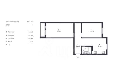 Планировка включает в себя изолированную кухню, со всей необходимой техникой, две спальные комнаты, гардеробную, лоджию и совмещенный санузел.