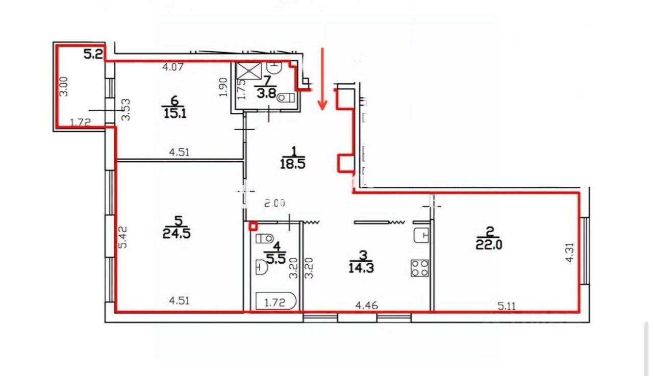 -У квартиры 3 ИЗОЛИРОВАННЫЕ комнаты ПРАВИЛЬНОЙ формы (24.5+22+15.1 м²);