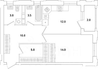 Общая площадь 51 кв.м. с учетом лоджии, комната 14 кв.м., высота потолков 2,75 м., увеличенные окна, что хорошо сказывается на естественном освещении, раздельный санузел, ПРОСТОРНАЯ прихожая 11 кв.м. с гардеробной 6 кв.м.