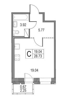 Общая площадь 28,73 кв.м. Продуманная планировка. Квартира со стяжкой, сделана разводкой электичества, установлены входные двери.