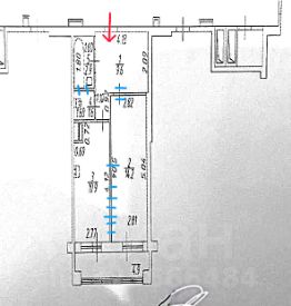 Общ пл- 39.2 м ( по ЕГРН)+площадь балкона-4.9м .Широкий застекленный балкон (выход с 2-х сторон ). Кухня-10.9 м, комната -14.2м, с/узел-совм(ванна), холл- 9.5м с большой гардеробной. Высота потолков -2.8 м.