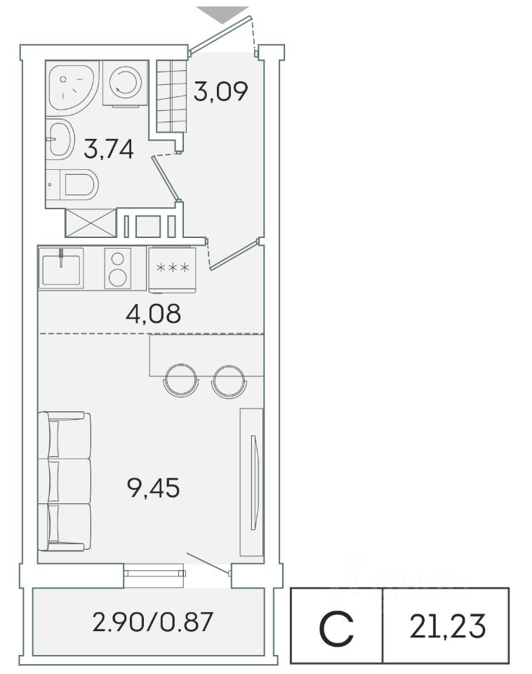 В продаже от застройщика студия 20.2 кв. м с черновой отделкой и практичной планировкой для удобной организации пространства. Корпус сдан