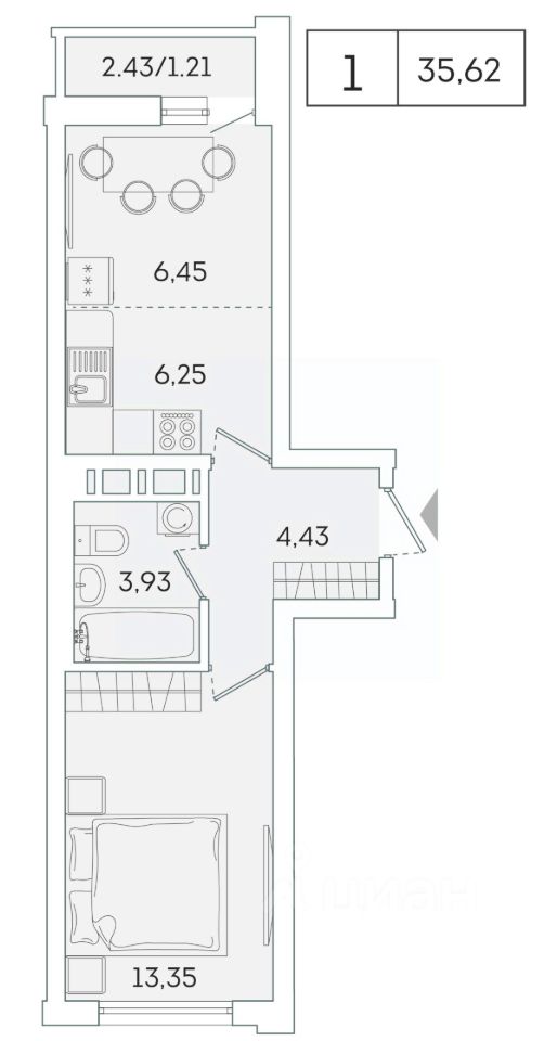 В продаже от застройщика 1 комнатная квартира 34.2 кв. м с черновой отделкой и практичной планировкой для удобной организации пространства. Корпус сдан