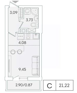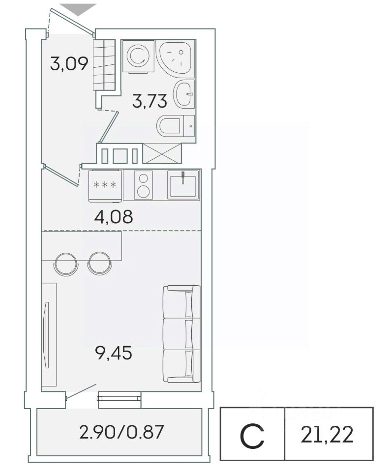 В продаже от застройщика студия 20.4 кв. м с черновой отделкой и практичной планировкой для удобной организации пространства. Корпус сдан