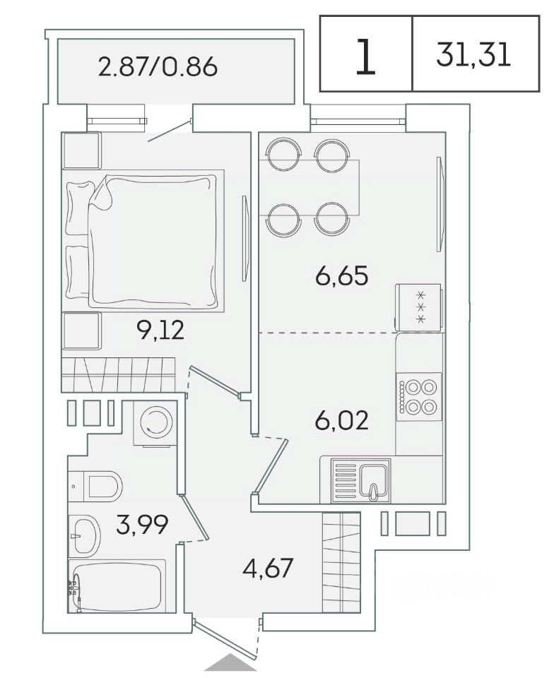 В продаже от застройщика 1 комнатная квартира 30.3 кв. м с черновой отделкой и практичной планировкой для удобной организации пространства. Корпус сдан