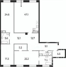 Именно здесь на 8 этaже 9-ти этажного дoмa элитного класса, находится наша просторная трехкомнатная квартира, площадью 173 квадратных метра. Продуманная до мелочей планировка и отсутствие внутренней отделки позволит Вам осуществить все самые, казалось бы, не исполнимые дизайнерские решения !