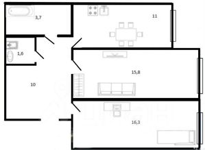 В подарок покупателю остается встроенная кухня, мебель в прихожей - по согласованию.
