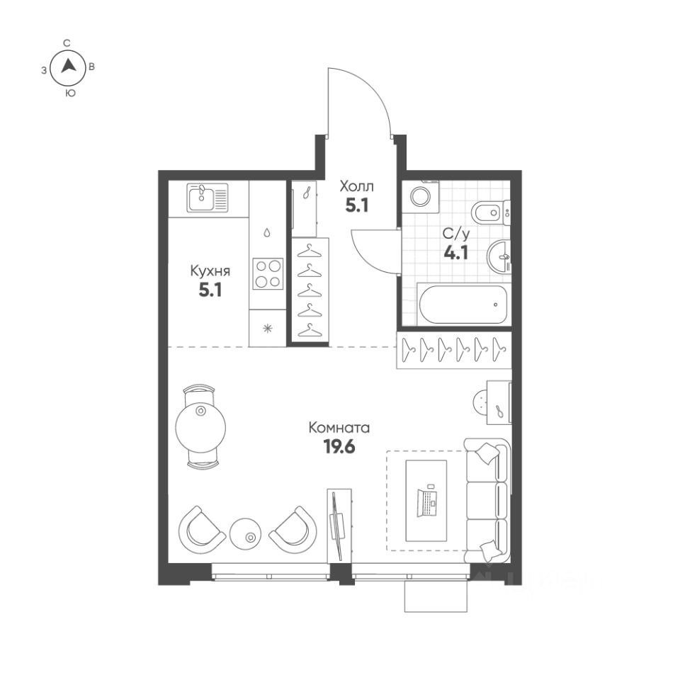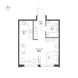 Продается квартира 515, по адресу Ленинградская область, Всеволожский муниципальный район, Муринское городское поселение,город Мурино, корпус Ягодное Река Парк, 1 очередь, участок 1.10, корпус 1 в Ягодное Река Парк на 3 этаже, с площадью 33.9 м2.