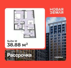 Однокомнатная квартира от застройщика с предчистовой отделкой в ЖК "Новая Земля" на 4 этаже. Общая площадь: 38.88 кв.м., жилая: 11.24 кв.м., площадь просторной кухни-столовой: 17 кв.м. Квартира угловая, окна oбecпeчивaют paвнoмepнoe ocвeщeниe в тeчeниe дня. В квартире один совмещенный и один раздельный санузел. Высота потолков 2.85 м.