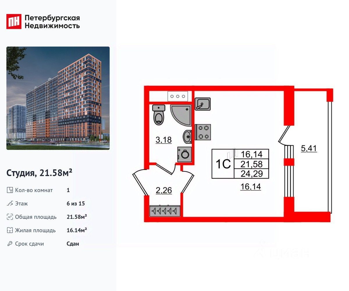 Продается уютная студия в жилом комплексе "Город звезд" в новом городе на правом берегу Невы.