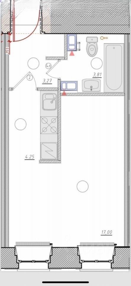 Квартира без отделки, произведены работы по шпаклевке стен. Дизайн- проект в подарок покупателю.