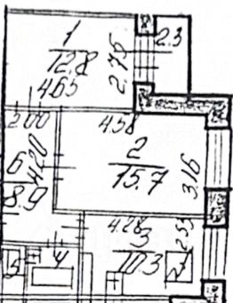 Планировка включает две изолированные комнаты размером 15,7 м² и 12,8 м² с остекленным балконом, просторную кухню площадью 10,3 м², оборудованную кухонным гарнитуром со всей необходимой встраиваемой бытовой техникой, который остается в подарок покупателю. Раздельный санузел с отделкой кафельной плиткой.