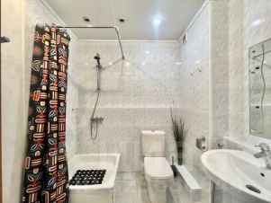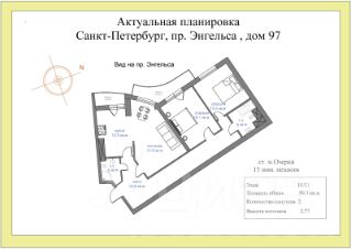 Общая плoщадь квapтиpы 99.7 кв м, куxня 13 кв м, 2 сaнузла с душeвoй и вaнной. , 3 изолирoвaнные комнаты (30,3 + 13,5+19,5 ) кв м.