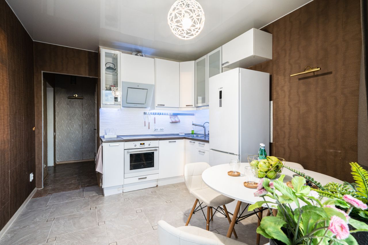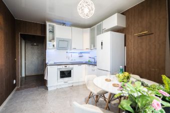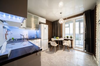 Кухня площадью 10.4 кв.м. порадует вас удобством и станет уютным местом для готовки, благодаря современной технике: духовой шкаф Electrolux, варочная панель Gorenje, холодильник Bosch. Встроенная посудомоечная машина решит проблему грязной посуды, а мощная вытяжка LUX сохранит воздух чистым и обеспечит отсутствие посторонних запахов.