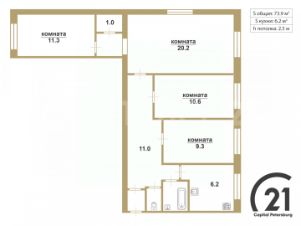 площадь комнат: 20,2 м2, 11,3 м2, 10,9 м2, 9,3 м2