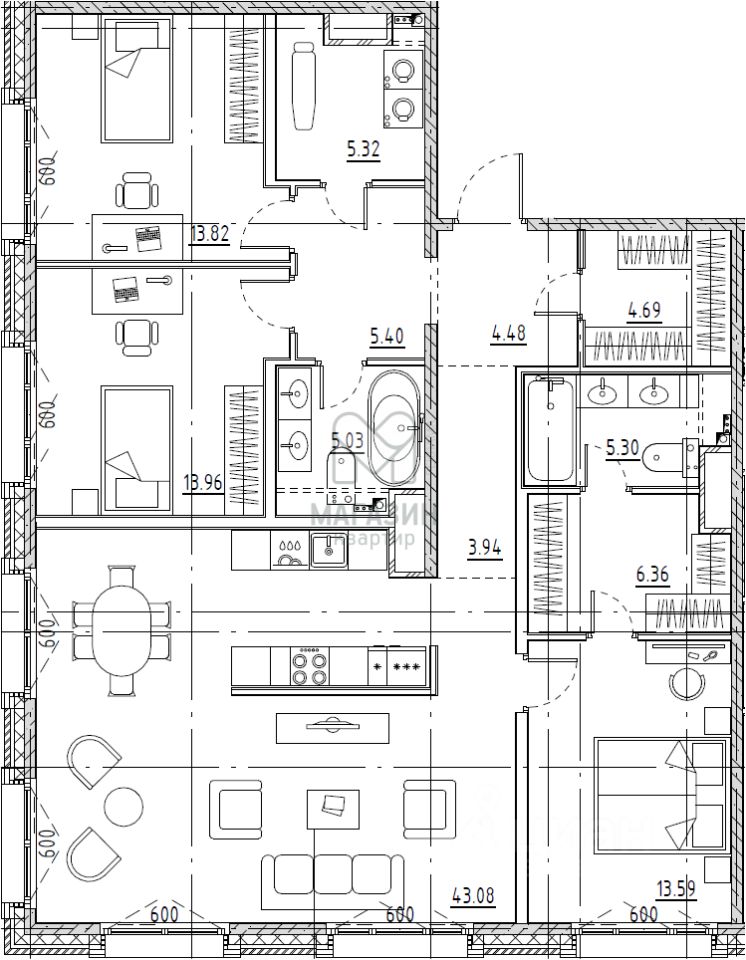 Планировка квартиры смежно-изолированная, что обеспечивает удобство в использовании пространства. Просторная кухня-гостиная позволит вам с удовольствием готовить и принимать гостей. Высота потолков в 3 метра добавляет объема и воздушности, создавая атмосферу уюта. Раздельный санузел отлично подходит для комфортного проживания.