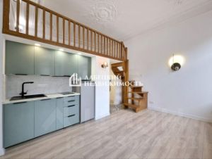 ПРО КВАРТИРУ-СТУДИЮ: Общая площадь: 37.3кв.м.; Два окна - широкие деревянные подоконники. Сохранена и отреставрирована уникальная лепнина на потолке. Выполнен КАПИТАЛЬНЫЙ ремонт помещения. ОТДЕЛЬНЫЙ отремонтированный вход. Площадь 1 этажа - 24.3м; второго яруса - 13м. Высота потолков 3.37; Второй ярус потолок -1,6м, полноценная удобная деревянная лестница.