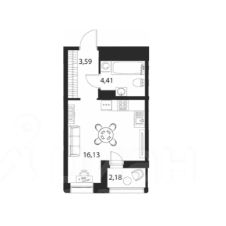 Планировка продуманная и функциональная: прихожая с местом для размещения гардеробного шкафа, светлое пространство, объединяющие в себе зону отдыха и зону кухни, с выходом на собственную лоджию с видом на живописные окрестности района, совмещенный санузел.